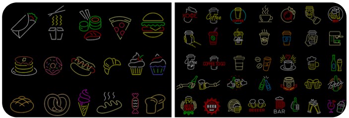 Кулинария, кафе-мороженое или бар — для любого заведения мы найдем подходящий вариант макета неоновой вывески.