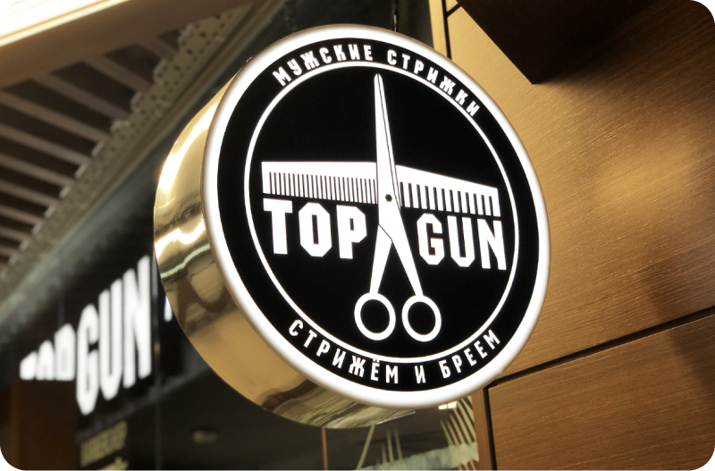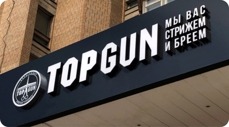 Например TOP GUN заменил белый цвет на серебряный и часто использует это сочетание при заказе вывесок.