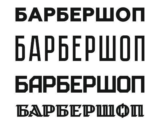 После того, как определились с текстом для вывески, стоит подумать над визуальным восприятием. Барбершоп олицетворяет мужественность, поэтому не стоит использовать изящные и мягкие шрифты, лучше всего подойдут гротескные шрифты или акцидентные дизайнерские шрифты без засечек.