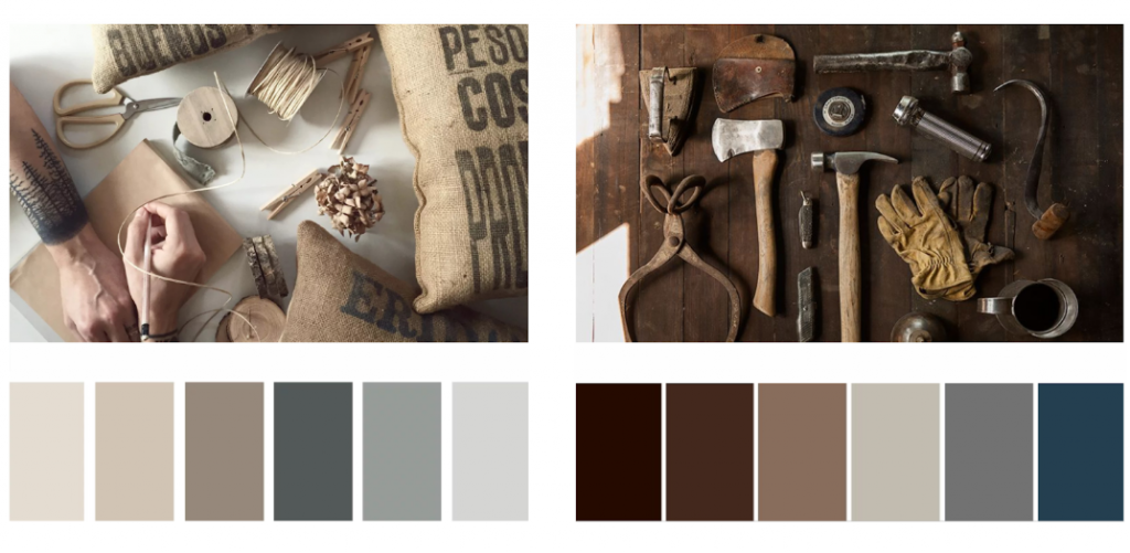 Подойдут все ассоциативные цвета, как например: белый, темно-синий, серый, коричневый, бордово-коричневый, темно-зеленый, холодные бежевые оттенки и серебро.